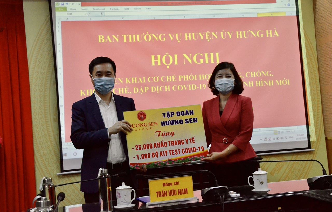 Chiều ngày 18/11, Công ty Cổ phần Tập đoàn Hương Sen đã trao kinh phí và trang thiết bị hỗ trợ công tác phòng, chống dịch Covid-19 cho huyện Hưng Hà.