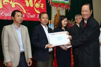 Anh hùng Lao động, Nghệ nhân Trần Văn Sen, Chủ tịch Tập đoàn Hương Sen mừng tuổi cho các đơn vị.
