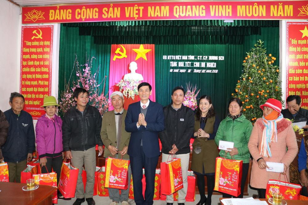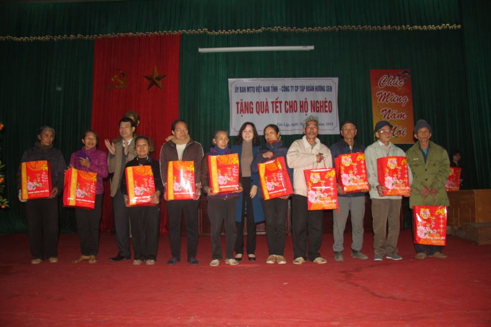 Nhân dịp Tết Nguyên đán Mậu Tuất 2018, đại diện Công ty Cổ phần Tập đoàn Hương Sen chúc các hộ nghèo một năm mới an khang, thịnh vượng, gặp nhiều may mắn; cùng với sự sẻ chia của cộng đồng xã hội mong muốn năm 2018 người nghèo trong toàn tỉnh sẽ vươn lên, tích cực lao động sản xuất, thoát nghèo và có cuộc sống ấm no, hạnh phúc hơn.
